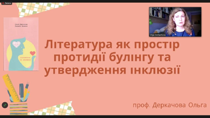 Проф. кафедри Деркачова Ольга взяла участь у всеукраїнській науковій конференції «Європейські парадигми формування культури толерантності в освіті, медіа, мистецтві», на якій говорилося про толерантність і пов’язані з нею сенси, цінності, бар’єри, виклики у різних контекстах – освітньому, мистецькому, літературному, мовному, медійному, правовому, про досвід різних вразливих груп, їхню видимість і прийняття в суспільстві. Про те, як життя посеред війни змушує задуматися про межі терпимості до того, із чим не згоден, і ще більше переконує, що не можна терпіти те, до чого примушують. Деркачова О. С. виступила на пленарному засіданні з темою «Література як простір протидії булінгу та утвердження інклюзії».