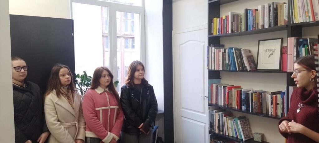 Студентки-магістрантки відвідали бібліотечний простір “Асортиментної кімнати”. Співредакторка медіа / архіву про культуру і мистецтво post Impreza Софія Сіренко розповіла першокурсницям про особливості книгозбірні, про наявні видання та книжкові новинки. Також студентки мали змогу ознайомитися з українознавчою та мистецькою літературою.