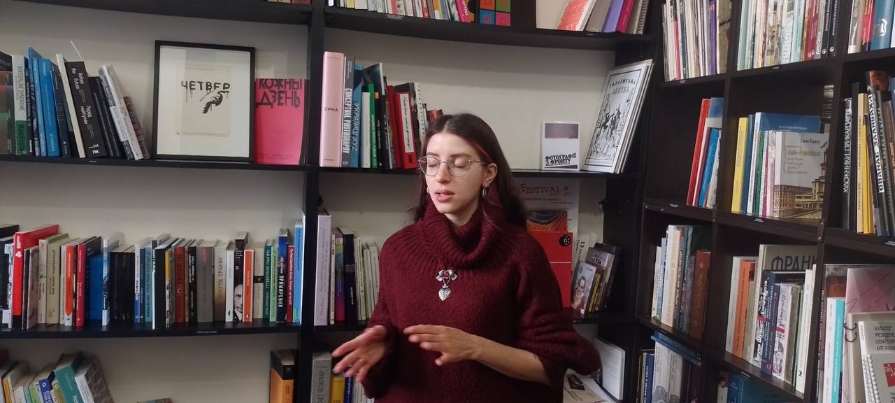 Студентки-магістрантки відвідали бібліотечний простір “Асортиментної кімнати”. Співредакторка медіа / архіву про культуру і мистецтво post Impreza Софія Сіренко розповіла першокурсницям про особливості книгозбірні, про наявні видання та книжкові новинки. Також студентки мали змогу ознайомитися з українознавчою та мистецькою літературою.