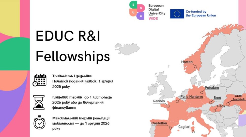 Карпатський національний університет імені Василя Стефаника запрошує викладачів та аспірантів університету подати заявку на участь у новому європейському конкурсі EDUC Research & Innovation Fellowships, який фінансується Європейським Союзом у межах проєкту EDUC-WIDE. Мета програми: Стипендії EDUC надають можливість дослідникам нашого Читати далі