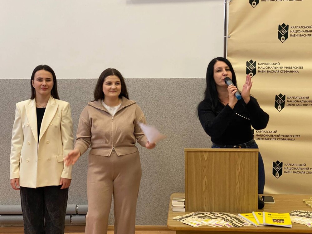 Модерувала зустріч з майбутніми студентами директорка Центру професійної кар’єри та освіти, доцентка кафедри філології Коломийського навчально-наукового інституту Галина Волощук. Вона привітала гостей університету, побажала впевненості у виборі професійного шляху та наголосила, що Карпатський університет — це не лише місце навчання, а й простір для розвитку, творчості та самореалізації.