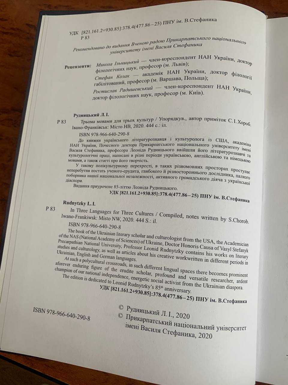 До книжки українського літературознавця і культуролога із США, академіка НАН України, Почесного доктора Прикарпатського національного університету імені Василя Стефаника, професора Леоніда Рудницького ввійшли його літературознавчі та культурологічні праці, написані в різні періоди українською, англійською та німецькою мовами, а також статті про його творчість. У такому полікультурному перехресті, в таких різномовних просторах проступає неперебутня постать ученого-ерудита, глибокого й різностороннього дослідника, палкого поборника нашої національної незалежності, активного громадського діяча з української діаспори. Видання приурочене 85-літтю Леоніда Рудницького.